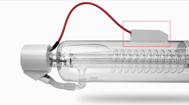 На изображении выделен соединительный блок высоковольтного провода CO₂-лазерной трубки. Этот элемент играет ключевую роль в стабильности работы и электробезопасности оборудования.